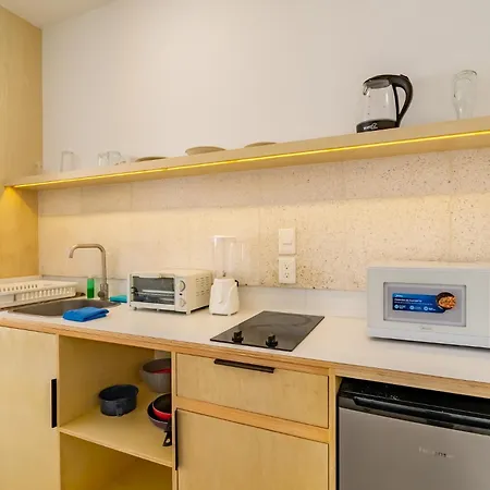 Une cuisine est enrichie avec de la verrerie. Des équipements de cuisine tels qu'un minibar et une cafetière/théière sont fournis pour offrir aux clients une expérience pratique. À 400 mètres, les Starbucks et La Casa de Las Mayoras offrent une variété de plats. Vous pourrez également prendre un bus à l'arrêt de bus Rehoyada, située à moins de 10 minutes à pied, pour explorer le reste de Cancún.